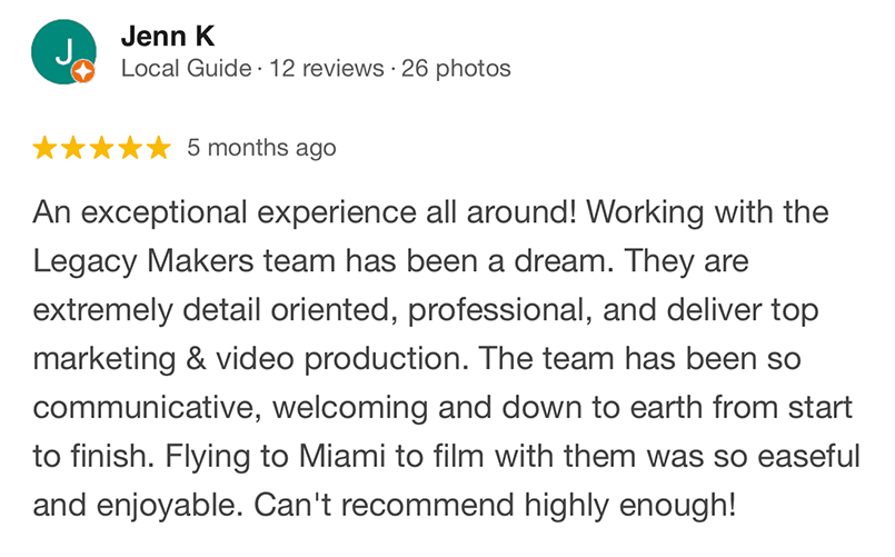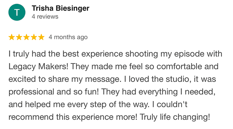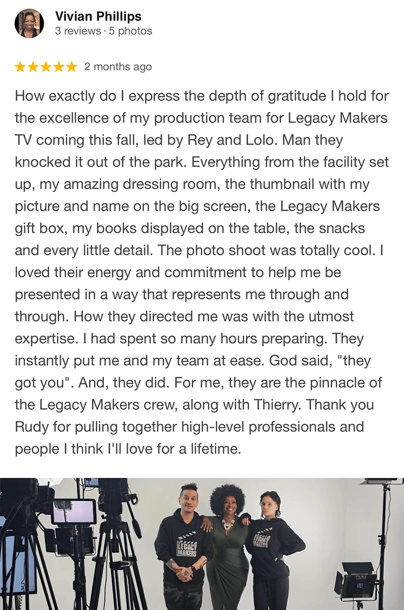 • My team manages every aspect of production, so all you need to do is show up, share your story, and watch your brand soar.
