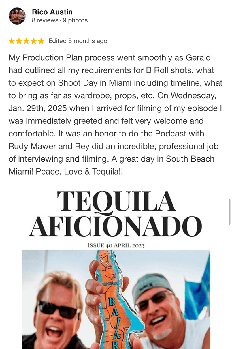 • Enjoy a live, in-studio interview with me, Rudy Mawer, in our premium 8 room Influencer studio on Miami Beach. This is a premium, high-quality production where you’ll sit down with me and create engaging content that resonates with viewers.